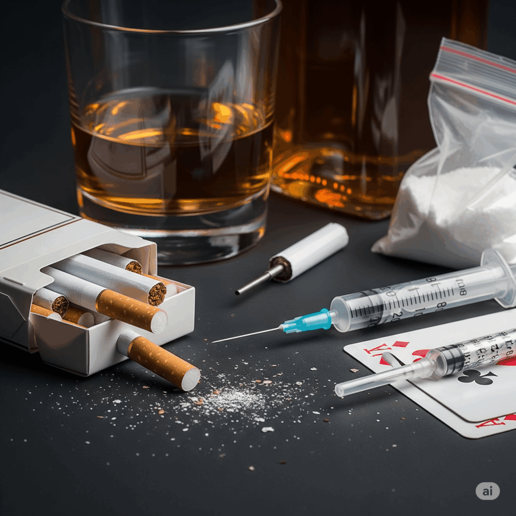 Kişinin alkol veya uyuşturucu maddeyi kontrolsüz ve sürekli kullanmasıdır. Fiziksel bağımlılığın yanı sıra psikolojik etkileri de derin olabilir.